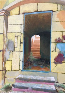 2020Paneeltje met als onderwerp de opgang van een vervallen villa op Mallorca.